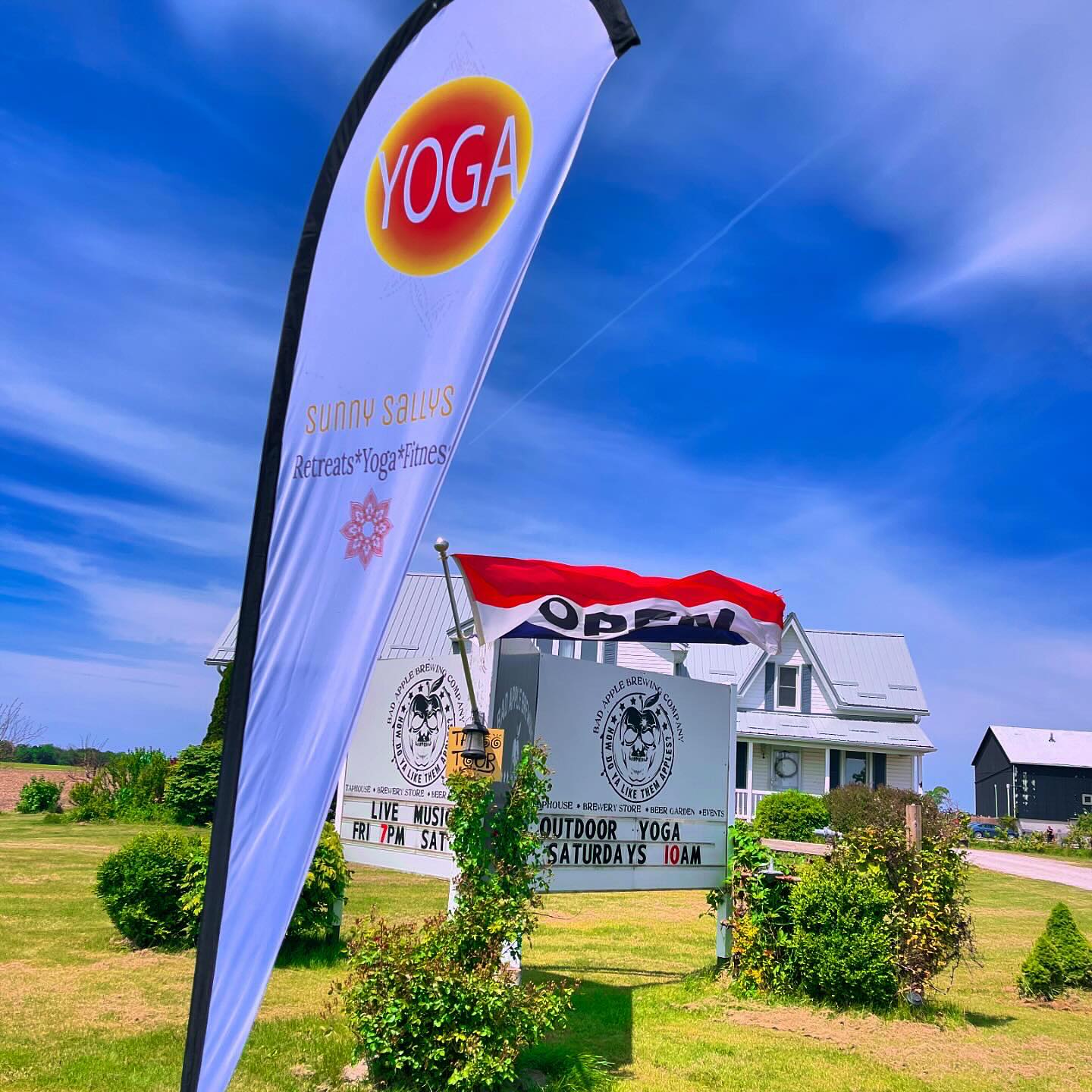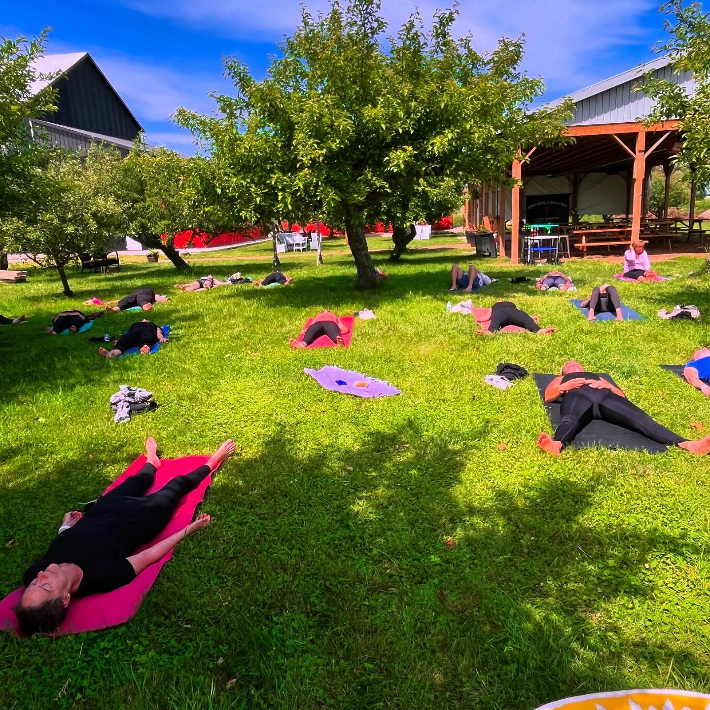 Classes Attention Weekend Warriors! Yoga & Brew Saturday morning at 10am. Attention Weekend Warriors! Stretch out with us at the Bad Apple Brewery in the Orchard for Yoga & Brew Saturday morning at 10am. Drop ins welcome! #yogacoffeesunshine #bayfieldontario #grandbend #lakehuronsunset #ontarioswestcoast #yogaoutdoors #yogaandbrew